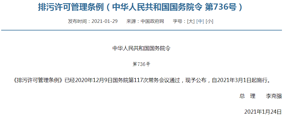 國務院發(fā)布《排污許可管理條例》,違法排污最高罰百萬!