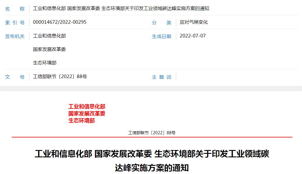 三部委印發(fā)工業(yè)領(lǐng)域碳達峰實施方案