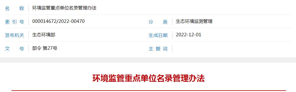 環(huán)境監(jiān)管重點(diǎn)單位名錄管理辦法